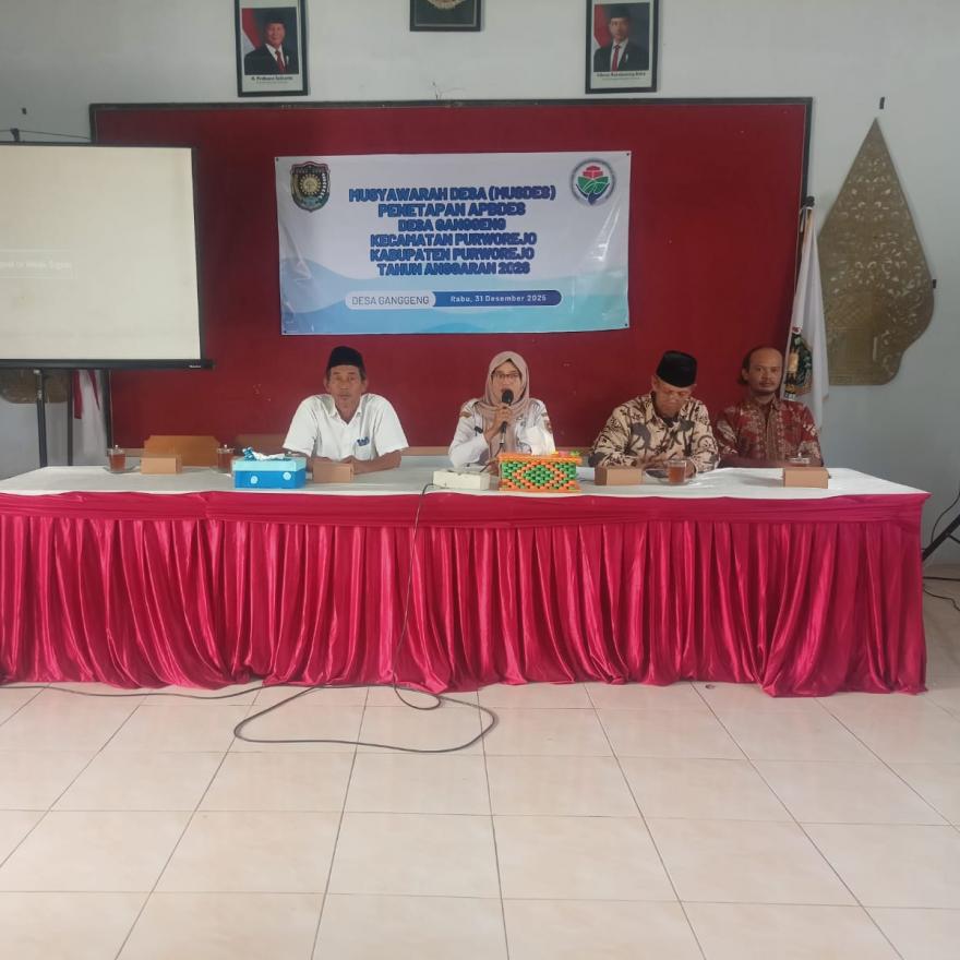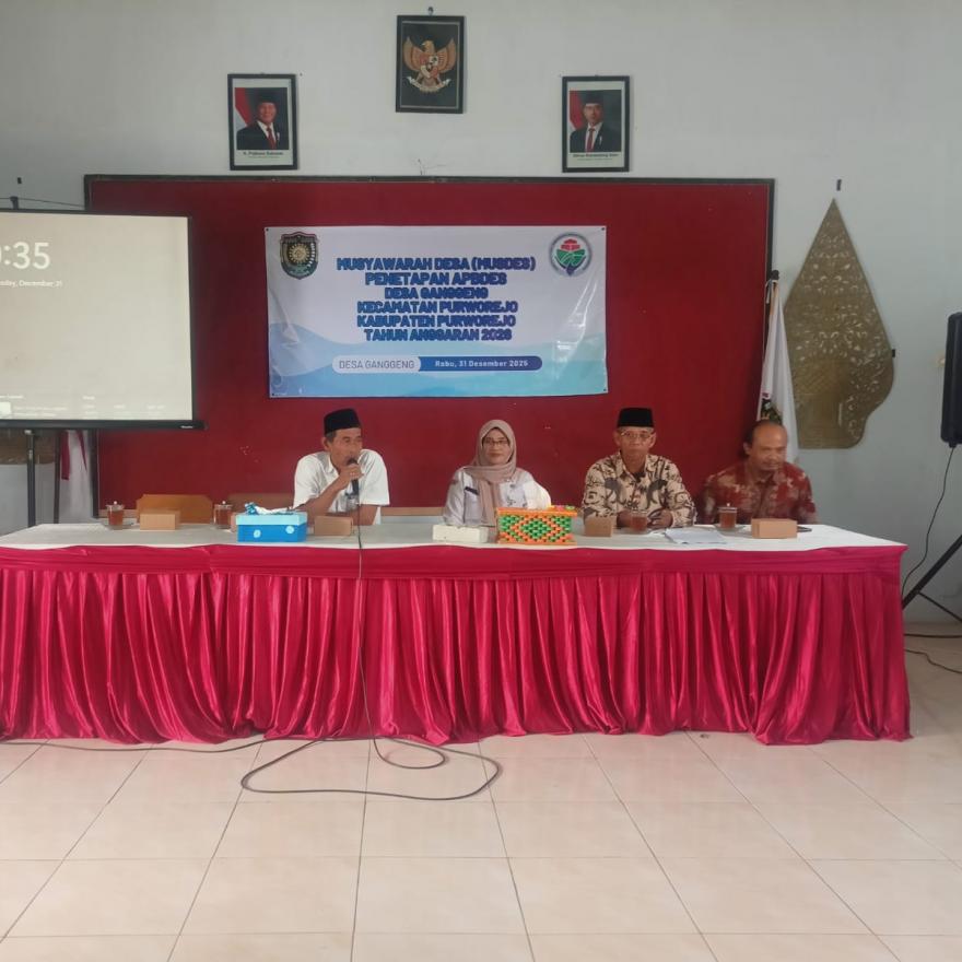 Pada hari Rabu (31/12/2025) , Pemerintahan Desa Ganggeng melaksanakan Musyawarah Desa (MusDes) penetapan APBDes tahun anggaran 2026 bersama BPD Desa Ganggeng. Dalam acara tersebut turut hadir Forkopincam yang diwakili Ibu Napsiyah selaku Kasi Pembangunan Kecamatan Purworejo, Wakil Ketua BPD Desa Ganggeng beserta anggota, Ketua dan anggota LPMD, Babinsa, Bhabinkamtibmas, Pengurus PKK Desa Ganggeng, ketua RT,RW se Desa Ganggeng dan lembaga lainnya. Acara berjalan khidmat dan ada beberapa usulan untuk perkembangan serta kemajuan desa.